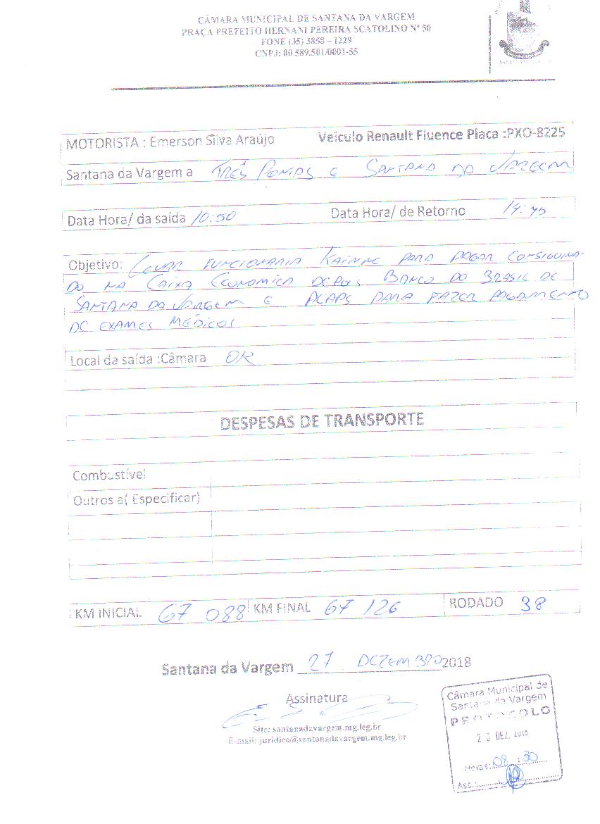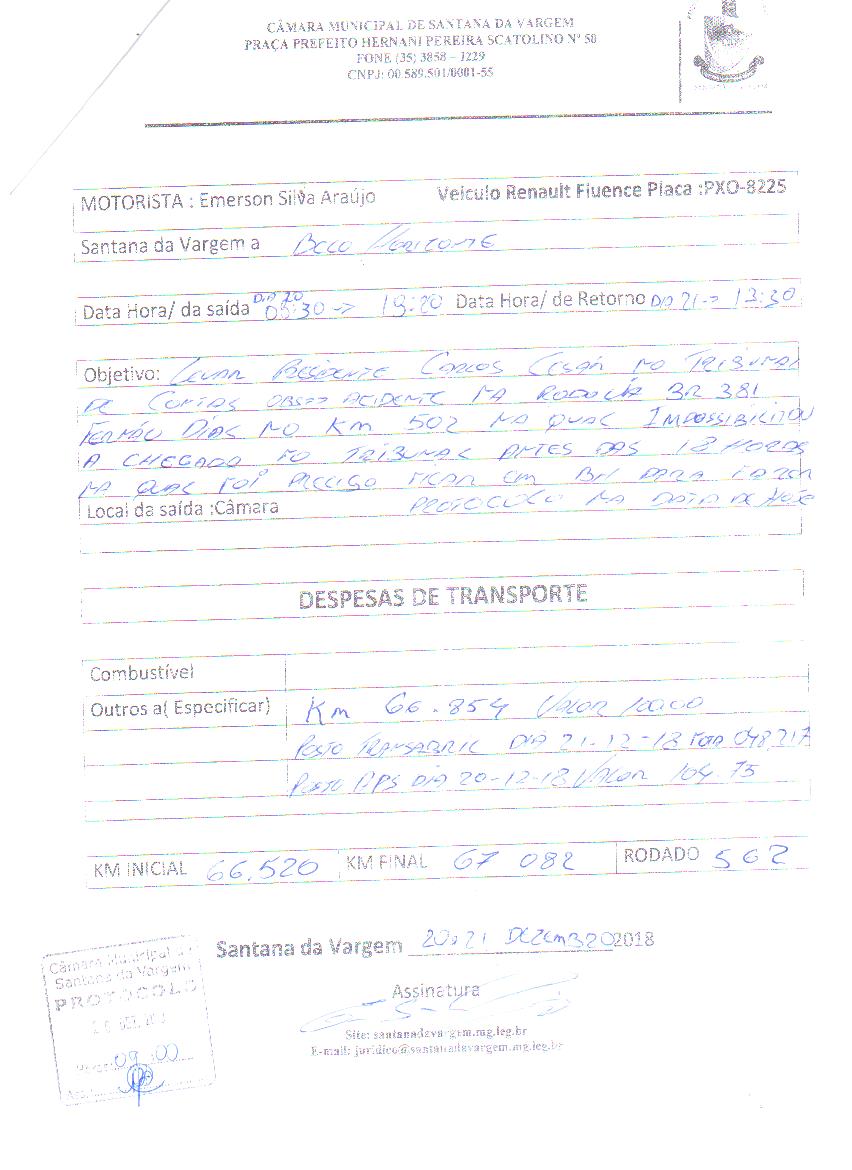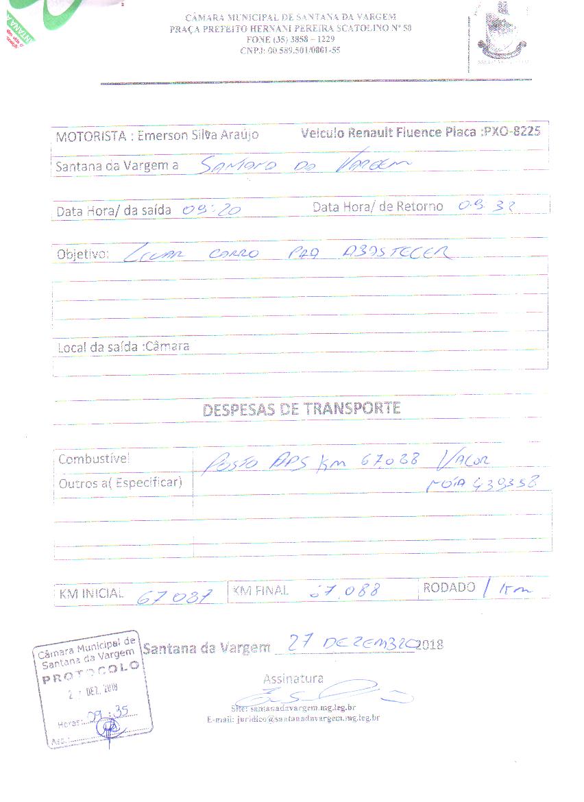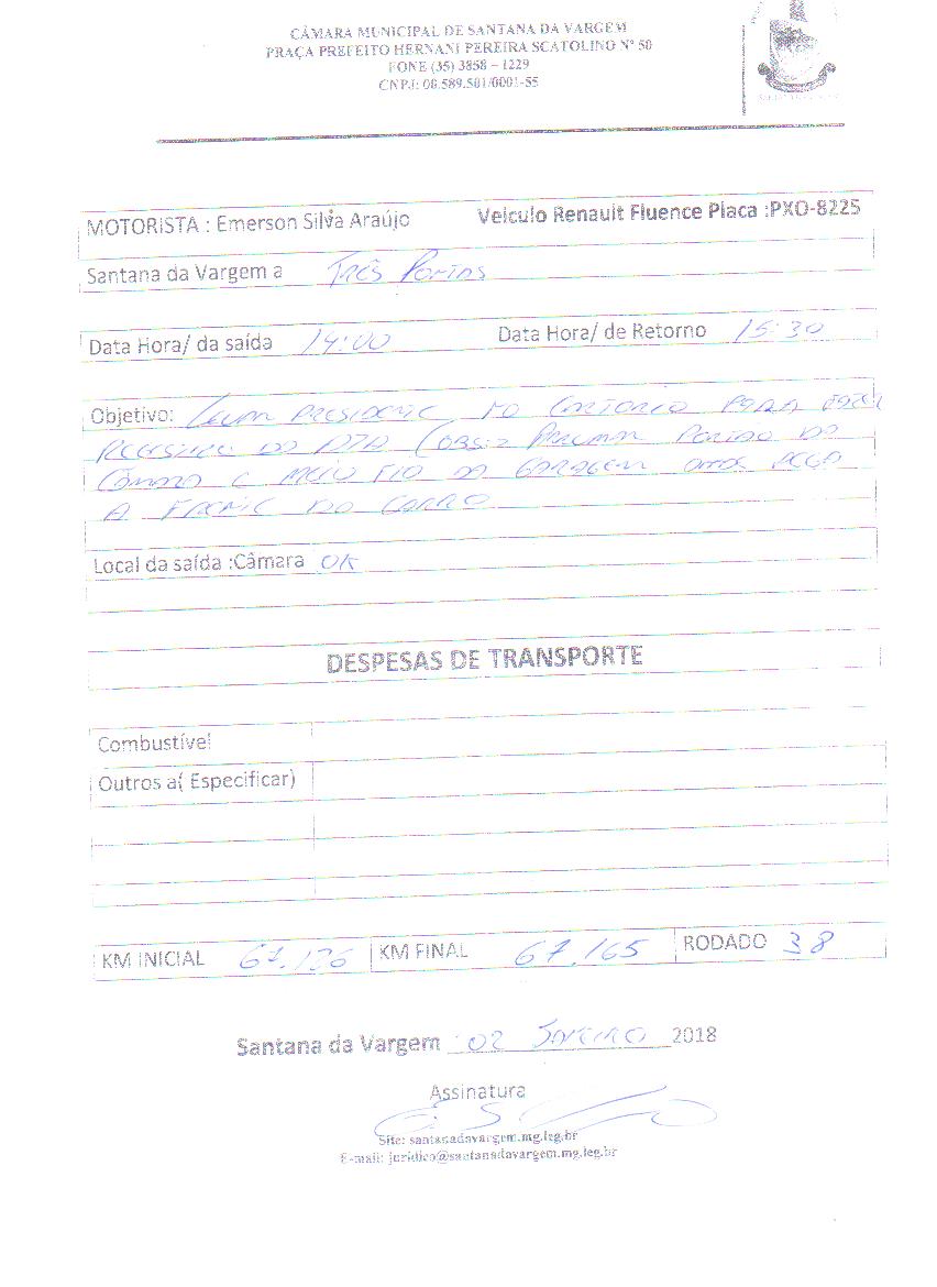 | REV Nº 003/2019 - Relatórios de rodagem do veículo Interessado: EMERSON SILVA ARAUJO Assunto: Levar presidente da camara no cartorio para buscar ATA Protocolo: 17/2019 |